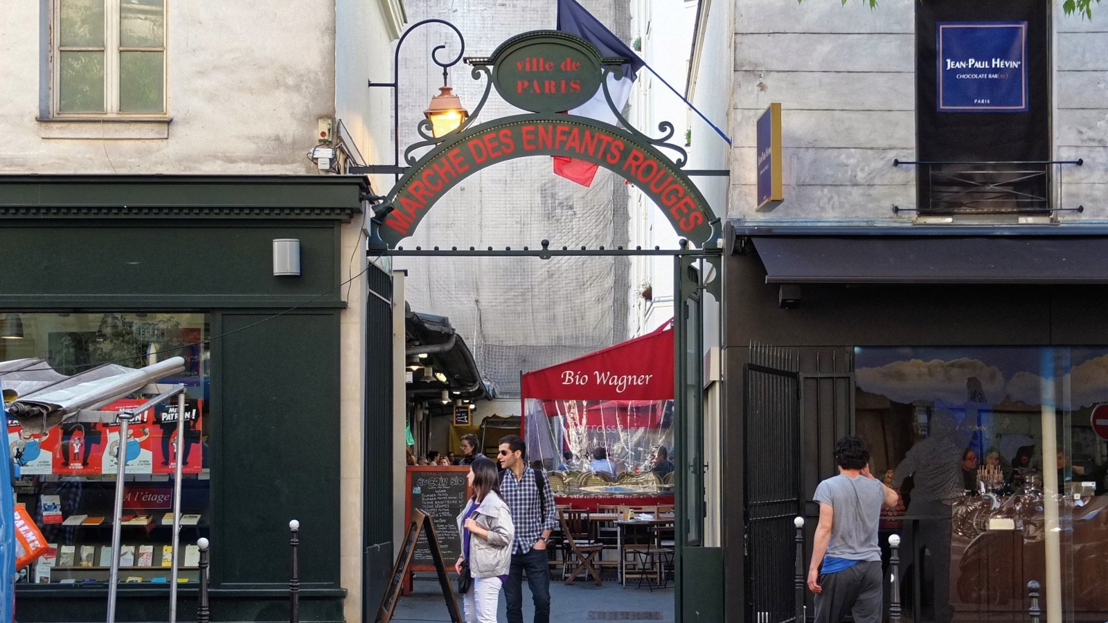 Situé dans le 3ème arrondissement de Paris, derrière une grille de la rue de Bretagne, le Marché des enfants rouges est un petit lieu insolite et gourmand. Crée en 1615, ce marché alimentaire est le plus vieux de la capitale. Aujourd'hui, il propose de nombreux étalages de fruits et légumes mais aussi des bouquets de fleurs et des stands de cuisine italienne, chinoise ou libanaise. Dans une ambiance conviviale, on s'installe au milieu d'une table commune et on déguste son assiette en plein milieu du marché !